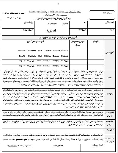 فرم ترخیص ادم ریه بخش مراقبت های ویژه قلبی