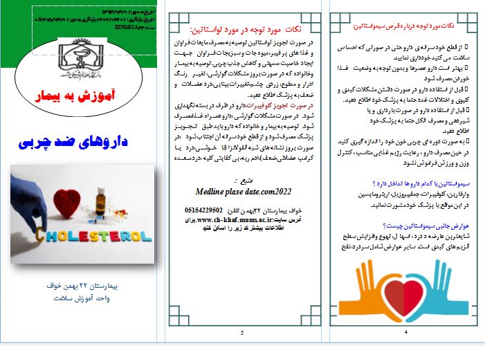 پمفلت آموزشی داروهای ضد چربی ویژه قلبی