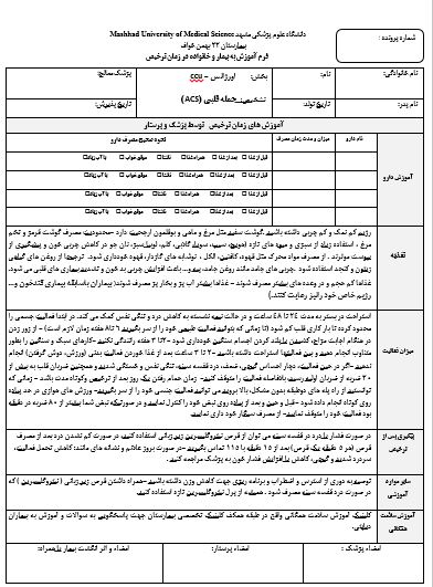 فرم ترخیص حمله قلب بخش مراقبت های ویژه