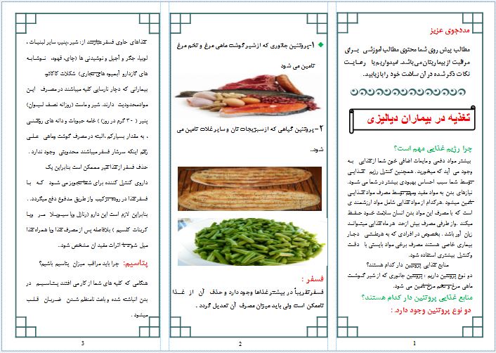 پمفلت آموزشی تغذیه ویژه دیالیز