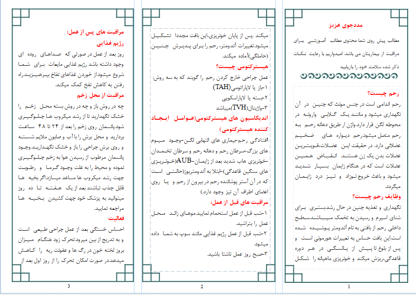 پمفلت آموزشی هیسترکتومی زنان و زایشگاه