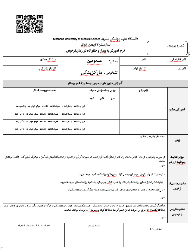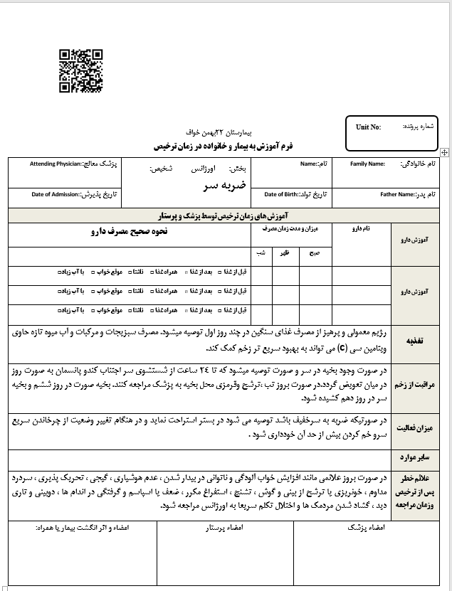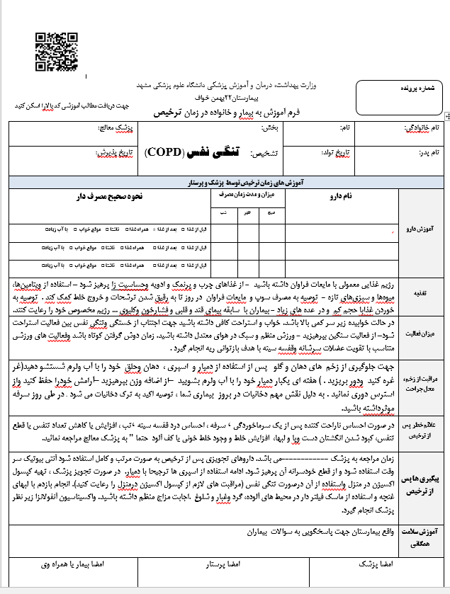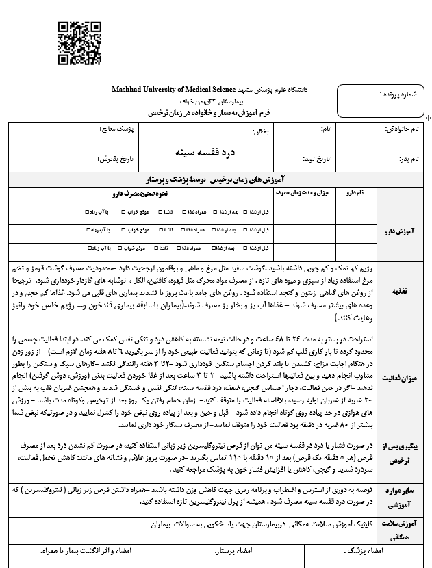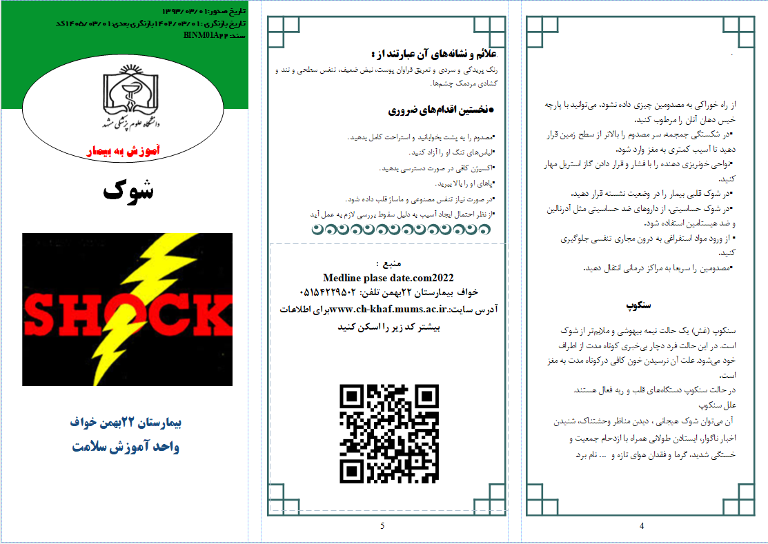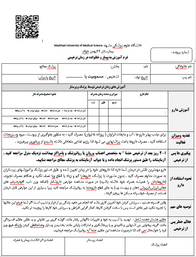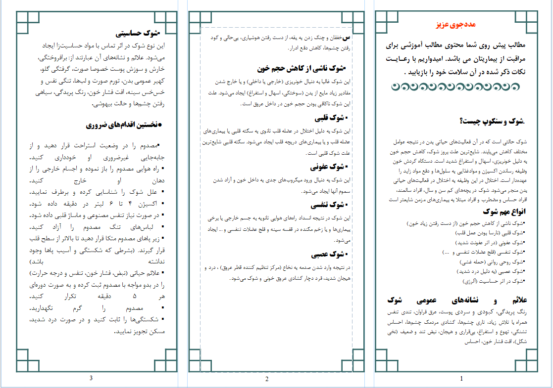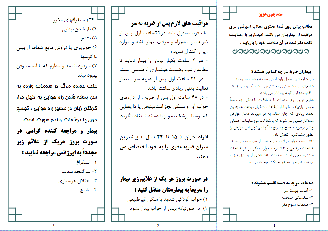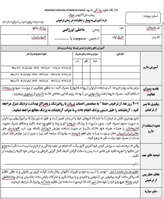 پمفلت های آموزشی وفرم های ترخیص اورژانس