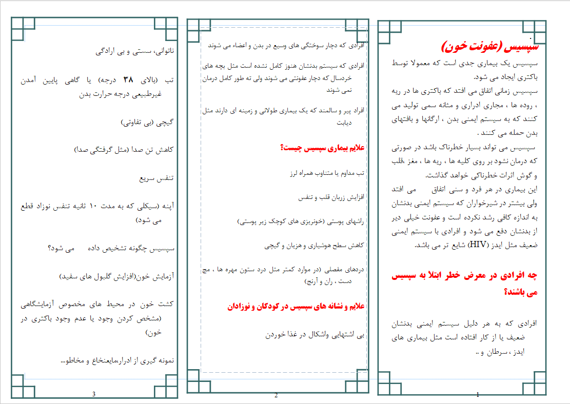 پمفلت هاو فرم ها آموزشی icu